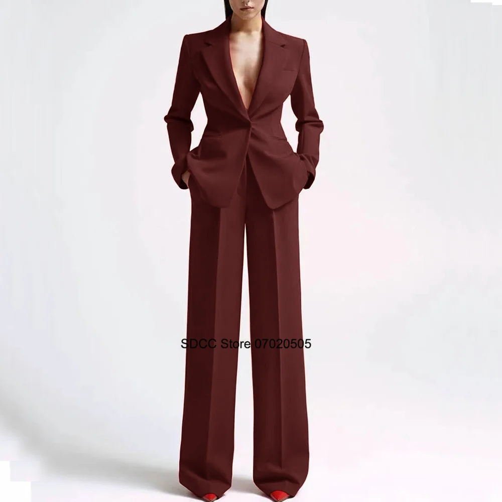 Red Suit Women Suits Sets Elegant Women’s Pants and Blouse Set